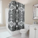 Shower Curtain and bathroom decor accessory with B And W Runway Fashion Inspired Repeating Pattern fine graphic art design and products collection by TheFabricSeal | Zazzle featuring geometric shapes, line drawing, circles, dots, splatter spots and tribal art style with bold and textured black and white colours.