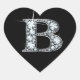"B" Diamond Bling on Black Heart Sticker
