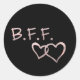 The letters BFF and linked hearts in a pink watercolor. Customise the background colour to your liking.