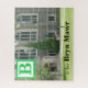 B is for Bryn Mawr! Here is a photo of the marvelous architecture of Bryn Mawr's Great Hall. Taylor green in front. Stone portico. Collegiate Gothic architectural style. Massive paneled windows allow abundant sunshine to fill the hall. A green letter B in the style of an alphabet letter block superimposed the the corner of the image.