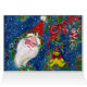 B alphabet letter Xmas monogram design. .Colourful, whimsical and artistic acrylic painting for Christmas. Santa Claus ,snowy Winter night with floral ornaments,red bow,green decorative plants,red ribbons, holly berries,puppets and toys in the snow by Bulgan Lumini (c)