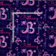 Modern decorative graphic monogram initial letter B and name patterned fabric. Pretty doodled art letter B converted into a graphic with your own short name. Hand drawn design embellished with flowers and hearts. Personalise with your own name choice (please note not all names will fit due to the nature of the font) currently reads Bethany, other name lengths are available, if you need assistance contact me, happy to post one for your name. Fabric in shades of pink and purple on a navy dark blue background which can be changed if required. A great way to personalise your sewing and quilting projects. Ideal for a girls personalised sewing items. Original art and design by Sarah Trett for www.mylittleeden.com