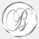 B Monogram Faux Silver Envelope Or Favour Seal. These classic round stickers are printed with non metallic ink on a flat sticker to look like silver. They are not beveled or embossed monograms but are designed to look like they are beveled or embossed monograms. These silver monogram seals are printed on a white background unless you select a different colour background before you proceed to checkout. In addition to being pretty wedding stationery supplies, these elegant wedding invitation envelope seals also make great monogrammed custom Christmas card seals, personalised holiday greeting card envelope seal stickers and customised Xmas card monogram seal stickers.