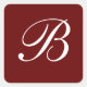 Classic White Letter Monogram on Dark Red Background Sticker Template, B.