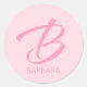 B Monogram Personalised Pink Classic Round Sticker