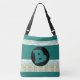 Stylish teal and aqua patterned large tote bag, the teal background can be changed to any color, along with the mongrammed initial can be personalized to yours