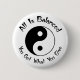 All Is Balanced - You Get What You Give - white button pin with black lettering and yin yang symbol.