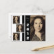 This beautiful and dramatic, ultra modern photo frame style postcard holds three small square shaped photos of your graduating student, along with a larger, prominent photo. The simple black and white colour scheme and offset design lets your grad take centre stage. Great for casual shots, and/or showing your grad's pretty prom dress or tuxedo. Suitable for boys and girls, this neutral design is printed on a postcard so it's easy to send out to all of your friends and family to announce your child's successful completion of highschool, college or university programs.