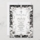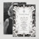 Victorian-Inspired Black and White Ornate Lace Effect and Floral Border Memorial Keepsake with Latin Cross.