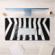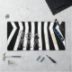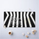 Introducing this stylish Black and White Striped Desk Mat, featuring three eye-catching characters - a coffee maker, teapot, and glass pitcher. The entire graphic design is presented in black and white, creating a timeless and sophisticated look. The company name and additional text to personalised are beautifully accentuated in Vegas Gold, adding a touch of glamour to the overall aesthetic.