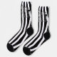 Introducing these stylish Black and White Striped Socks, featuring three eye-catching characters - a coffee maker, teapot, and glass pitcher. The entire graphic design is presented in black and white, creating a timeless and sophisticated look.