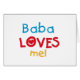Baba Loves Me T-shirts, cards, stickers, bodysuits bags, and more with colourful red, yellow, and blue text and heart design. These Baba Loves me apparel and gift items will make baba smile!