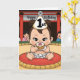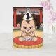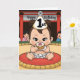 This is a generativecontent image. This image is in the style of a cartoon. I wanted the baby sumo wrestler to be eating a piece of cake though it looks more like its holding the cake in front of hits mouth. I put the text happy on the left side of the 1st and birthday on the right side of 1st so the card is saying happy 1st birthday.