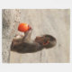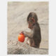 An adorable baboon baby sitting in the sand with an orange on this awesome fleece blanket.