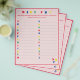 Design features a pale pink background to a bright red border and text. "BABY ABC" is displayed at top in bright colours. Directions are customisable for a more personalised touch, if desired. Guests are asked to list baby items beginning with the letter shown. Also available in blue. Designed to coordinate with the "ABC Baby Shower and Nursery Collection."