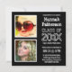 A pair of square format photo frames with white edges on black background, next to a plain black background with your graduate student's class year and highschool graduation party or ceremony details in white text. Upload your own favourite photos and resize/reposition as needed. Shown here with sample baby and teen photos by D. Sharon Pruitt both cc/cu ok with attribution.