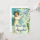 vintage christian painting in blues and white with a cute angel floating on a cloud and ringing a christmas bell.