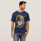 I give wanted to give this a 4 instead of a 5 because these Basic DARK T0shirts run unexpectedly SLIM or Narrow. Which is great if you do not have a potbelly, but I have a paunch. It isn't the shirt's fault that I've got a beer belly. The design and shirt itself is a quality cotton shirt. The color is more of a deep purple, but still a very pretty color. The Basic DARK T-shirts run a bit SLIMMER than the Basic Ts. The neck is a fraction narrower (or seems to be narrower) also. I'm a paunchy middle-aged woman and my neck is 12 inches (31cm) thick and the neckline fell about the same as in the photo of the man, and I had the desire to tug it a bit. So if you're a thick necked man or like loose shirts, be aware these are slimmer shirts. Once I get rid of my lockdown paunch it'll look great. The shirt washed well in cold water with no apparent bleeding. We don't have a dryer, so it hung dry. Did not shrink. Love the colors and the design. The design looks smaller on my shirt than it does on the model on-line. But still, it looks good on the shirt. The printing looks as it does on the model, just the size seems fractionally smaller. Washed garment in cold water, hung dry and design appeared unaffected.
