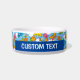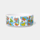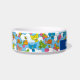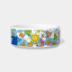 This is a heavy, durable bowl decorated with Tibbies of many colors, the perfect size for hungry/thirsty Tibs. The design is interesting and printing clear.