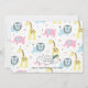This precious baby design is a wonderful way to celebrate your new arrival. This design has a white background with yellow giraffes, blue lions, and pink elephants. In the centre there is a white text box to customise with your Baby Boy's name, weight, height and date of birth. On the text box is a sweet blue lion. This is perfect for your nursery for your little boy.