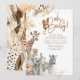 Introducing "Oh Baby!" invitation - the perfect addition to your charming jungle safari baby shower! This delightful design features the most adorable little animals, including a precious baby elephant, a sweet little giraffe, a lovely zebra, a little leopard, and the cutest little monkey holding onto the word "Baby". Soft and modern colours of ivory, beige, brown, and gold perfectly complement the contemporary bohemian style of the theme, while the watercolor pampas grass and dry tropical foliage add an extra touch of elegance and evoke memories of Africa's breathtaking wilderness.The back side of the invitation boasts a striking painting of wild animal patterns that will leave a lasting impression on all recipients. This fun and fashionable gender-neutral baby shower invitation is the perfect choice to invite your guests to the most memorable and stylish celebration that they won't want to miss. Order now and let the excitement begin! Matching products available. Illustration by "FrostyDew". This design is exclusively only available here in my store on Zazzle.