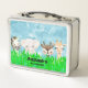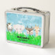 This adorable design is great for the little ones. Four baby animals playing in the grass. There's a baby zebra, elephant, deer and giraffe. Lunchboxes are available in 7 colours, including stainless. The text can be customised.
