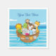This party napkin features an ocean scene with Noah's Ark full of baby cartoon animals including: lion, monkey, panda, turtle, crocodile, giraffe, elephant, zebra, rabbit, crab, tiger, hippo, bear, racoon and rhino.