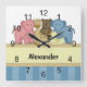 Customise this sweet stuffed animals image printed on a wall clock, ideal for baby's nursery. Just edit the personalised name text in the easy Zazzle editor. Created in part with graphics from Scrappin Doodles at scrappindoodles.com,