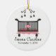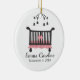 Elegant black crib with teddy bear mobile and pink bedding. Add your newborns name and birth date. Perfect for holiday gifts or send as a birth announcement. Remember to add a photo of your little one on the back of the ornament!