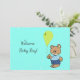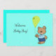 Cute baby bear boy with balloon and text WELCOME BABY BOY