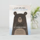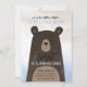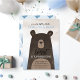 A cute baby bear invitation featuring a brown bear with a watercolour feel to it. Includes a blue balloon stripe background for the backside. Matching items available in the Baby Bear Blue Balloon collection.