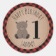 Baby Bear Cub Lumberjack Plaid Birthday Classic Round Sticker