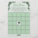 The design: On the front, a BINGO game card with instructions that features hand-drawn shamrock details against an elegant soft green background. The back features an adorable green and grey argyle pattern with matching green tones.