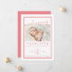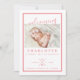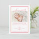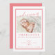 Introduce the birth of your beautiful baby girl to your family and friends with this beautiful, stylish and trendy photo birth announcement card featuring a modern, sleek salmon pink border frame with white background. Baby placeholder image with script handwriting font "welcoming" displayed at the top of the birth announcement card. Sleek, modern typography design that incorporates baby's first and last initials to create a modern monogram design. The reverse side features salmon pink background with a circle crest style design featuring the baby's first and last initials and thank you message from parents. You can customise the text size, text colour, font and layout for your own personal design preference.