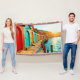 Step into a vibrant coastal dream where a dazzling boardwalk guides you towards the shimmering sea. This AI-crafted masterpiece, meticulously enhanced by a skilled artist, captures the breathtaking beauty of a sun-kissed harbour. Each brightly painted boathouse stands as a beacon of joy, reflecting the warm, inviting glow of the setting sun. Lose yourself in this picturesque scene, where tranquil waters and brilliant colours converge to create a moment of serene bliss and creative wonder.