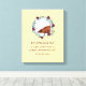 Cute personalised BABY KEEPSAKE Canvas Print showing a teal and burgundy floral wreath against a pale yellow background. The inspirational quote says (Baby) IS A BLESSING FROM A PRAYER-ANSWERING GOD, which is loosely based on the story of Samuel's mother, Hannah in 1 Samuel 1:27-28 - "For this child I prayed; and the LORD hath given me my petition." Personalise by adding the name, editing the message, and adding the date of birth and/or weight. The text is in burgundy. Matching items available.