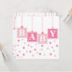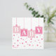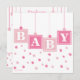 Let your guests know that a sweet baby girl is on the way with this cute baby block design in shades of pink on silver paper.