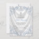 Baby blue and white elegant silver cross on a beautiful white satin background boys baptism and christening invitation. This blue baptism christening invitation is easily customised for your event by adding your event details, font style, font size & colour, and wording.