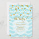 A stylish baby boy shower invitation in blue and white chevron design with golden confetti. (<a href="https://www.freepik.com/free-photos-vectors/background">Background vector created by coolvector - www.freepik.com</a>). <br/><br/>The card is easy to customise with your wording, font, font colour and choice of six paper types.<br/><br/>Not exactly what you're looking for? All our products can be custom designed to meet your needs at no extra charge.<br/><br/>Simply contact us at askcottonlamb@gmail.com<br/><br/>Coordinating products available: