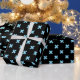 Baby blue cross stitches on black wrapping paper