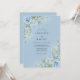 This design features a serene baby blue backdrop accented by delicate watercolor floral sprays. Soft blue blossoms and sage green willow leaves create an airy, romantic mood perfect for a seasonal event. The painterly style highlights a tranquil and elegant aesthetic.