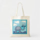 Digital art of a baby elephant holding flowers in it's trunk in cute patchwork style with a dotty blue sky and fluffy stitched clouds. Cute tote available to customise.