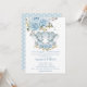 Baby Blue Floral Cute Elephants Twins Baby Shower Invitation