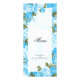 Menu. Featuring a pretty baby blue flower design ready for you to personalise. This design will work great for a wedding, anniversary, birthday, engagement, special occasion, any other event, etc... just by changing the wording. Matching products available - ⭐This Product is 100% Customisable. Graphics and / or text can be added, deleted, moved, resized, changed around, rotated, etc... ⭐99% of my designs in my store are done in layers. This makes it easy for you to resize and move the graphics and text around so that it will fit each product perfectly. 📌 (Please be sure to resize or move graphics if needed before ordering) You can also "TRANSFER DESIGN" on other Zazzle products and adjust the design to fit most of Zazzle items. (button is down on the right side of the page) This design is made with high resolution vector and/or digital graphics for a professional print. 📌NOTE: (THIS IS A PRINT. All Zazzle product designs are "prints" unless otherwise stated under "About This Product" on the left side of this page) The design will be printed "EXACTLY" like you see it on the screen and on the product...so please make sure when you do your changes on the resizing of any of the graphics or text that it fits in the areas correctly and that your spelling and wording is how you like it to be in size, colour and font. If you have any questions about the "DESIGN ONLY" or need help please contact me at ✉ siggyscott@comcast.net or visit my store link: https://www.zazzle.com/store/designsbydonnasiggy (Copy and Paste) I'll be happy to help. 📌 ALL OTHER QUESTIONS (shipping, refund, the printing, the product, etc...) please contact Zazzle or the Maker ⭐DIRECTLY⭐. Thank you for the support and stopping by my store - DesignsbyDonnaSiggy. © Donna Siegrist⭐⭐⭐ ZAZZLE promises 100% satisfaction. If you don't absolutely love it, Zazzle will take it back! ⭐⭐⭐ 1-888-8ZAZZLE (1-888-892-9953) Phone hours: Mon - Fri: 9AM - 5PM PT (12PM - 8PM ET)