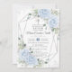 Baby Blue Floral Silver Baptism Christening Invitation