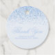 Baby Blue Glitter favour tag. Designed with multi-coloured blue glitter on a baby blue coordinating background with the words "Thank you". Coordinating products are available through Metro-events shop on Zazzle.