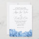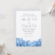 Baby blue hydrangea flowers wedding invitations with a place for the names of all the parents at the top. Also include the reception venue address (if different from the ceremony) or simply print "reception to follow". Modern fonts are used in the text templates with the names in handwritten script. Light grey colour on reverse. Colours and wording can be changed - please contact me for help and for matching RSVP and other items for your event.