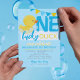Baby Blue One Lucky Duck Watercolor 1st Birthday Invitation