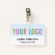 Personalise our professional PVC name badge with your company logo, employee name, job title, or other custom text. It's made of durable PVC plastic. Designed in light blue and other colours with a modern minimalist design by MISOOK. All colours are customisable. Available with a lanyard, metal clip, or retractable reel. The dimensions are 3.38 inch x 2.13 inch. No minimum order quantity and no setup fee.