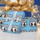 Cool, retro Route 66 road sign. Old black and white vintage, retro traffic, road sign on cute Baby Blue background. Images used on this item are licensed and © Graphics Factory.com